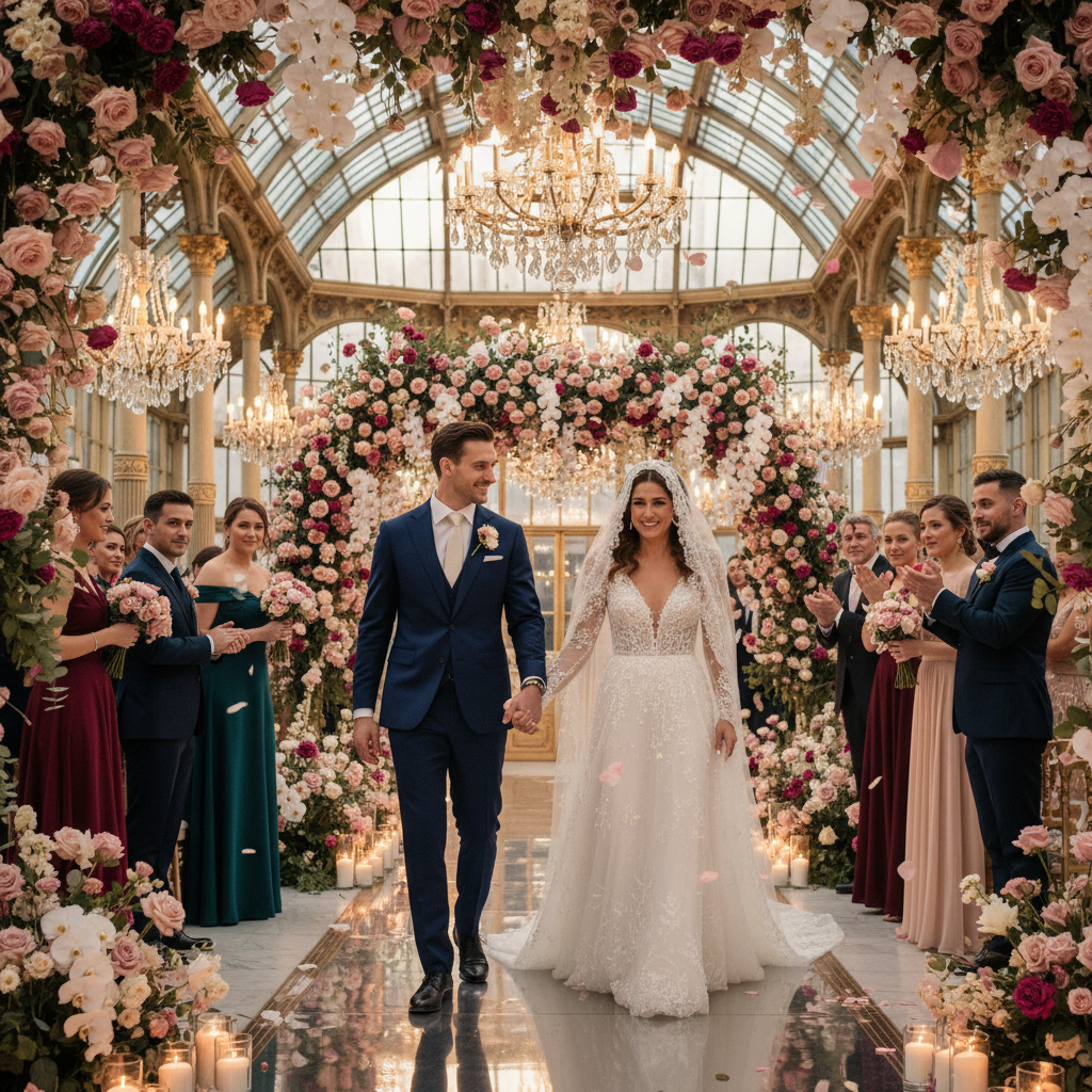 "A wedding filled with overwhelming emotions of joy and tears of happiness between the couple. As the groom goes to meet his bride, the atmosphere is charged with a profound sense of bliss and elegance. Set in an extraordinary, luxurious venue with a stunning color palette.""A wedding filled with overwhelming emotions of joy and tears of happiness between the couple. As the groom goes to meet his bride, the atmosphere is charged with a profound sense of bliss and elegance. Set in an extraordinary, luxurious venue with a stunning color palette."3