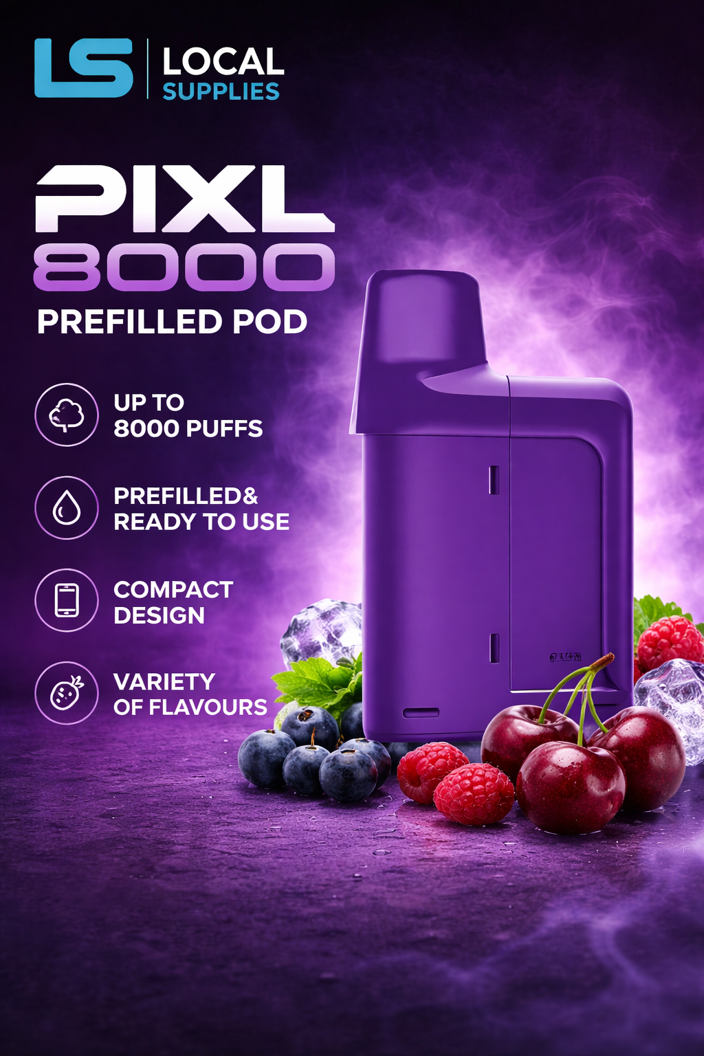 The PIXL 8000 Prefilled Pod is a prefilled pod designed for use with compatible devices. It comes ready to use and typically delivers up to 8000 puffs, depending on usage patterns.