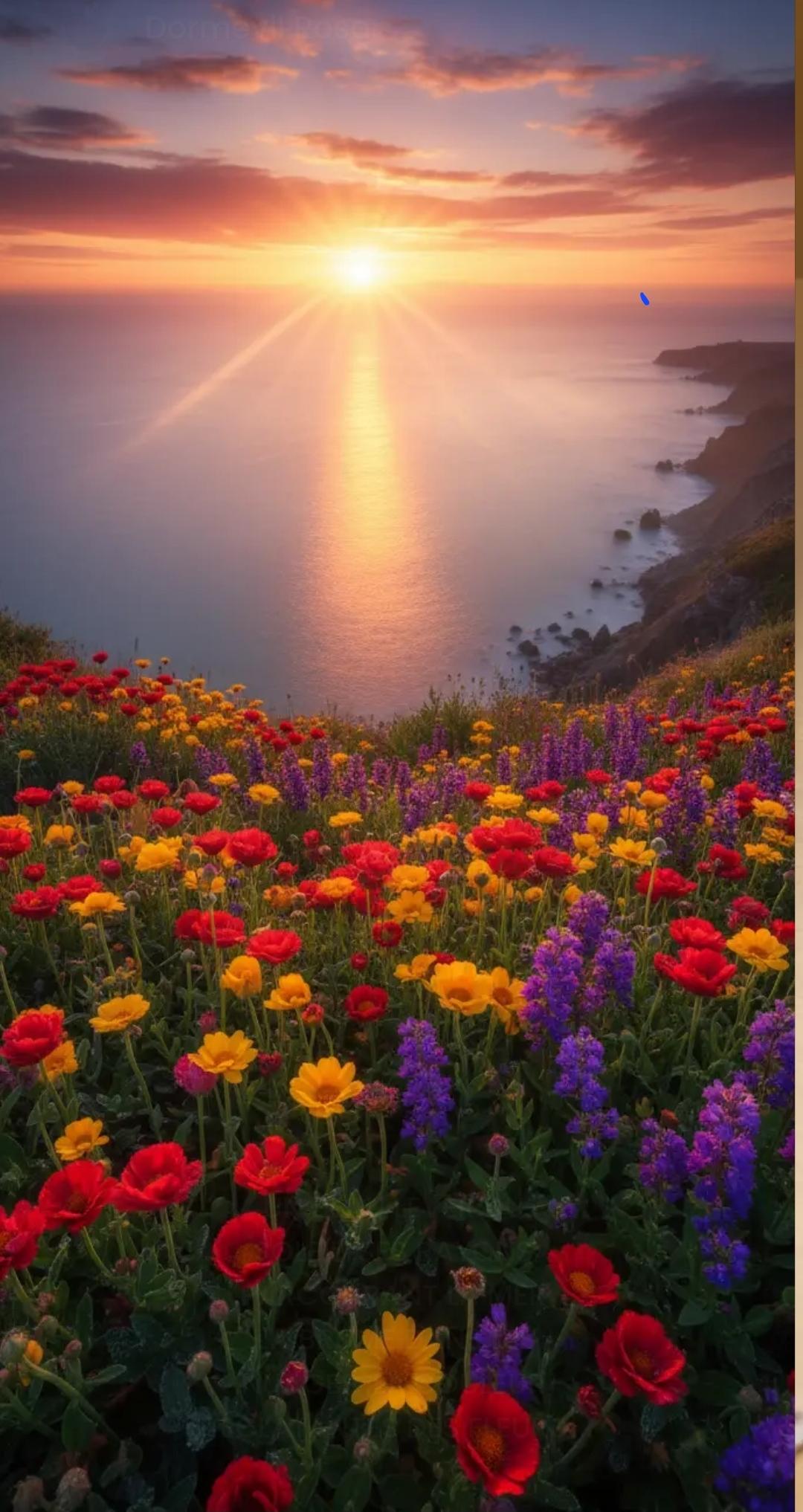 The sea reflects pastel sunset tones, transitioning into soft dusk blues and pinks.