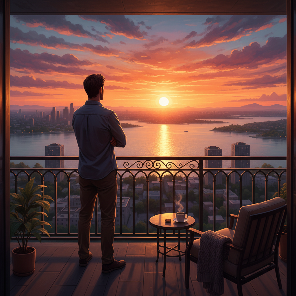 man watching the sunset on a balconyman watching the sunset on a balcony4